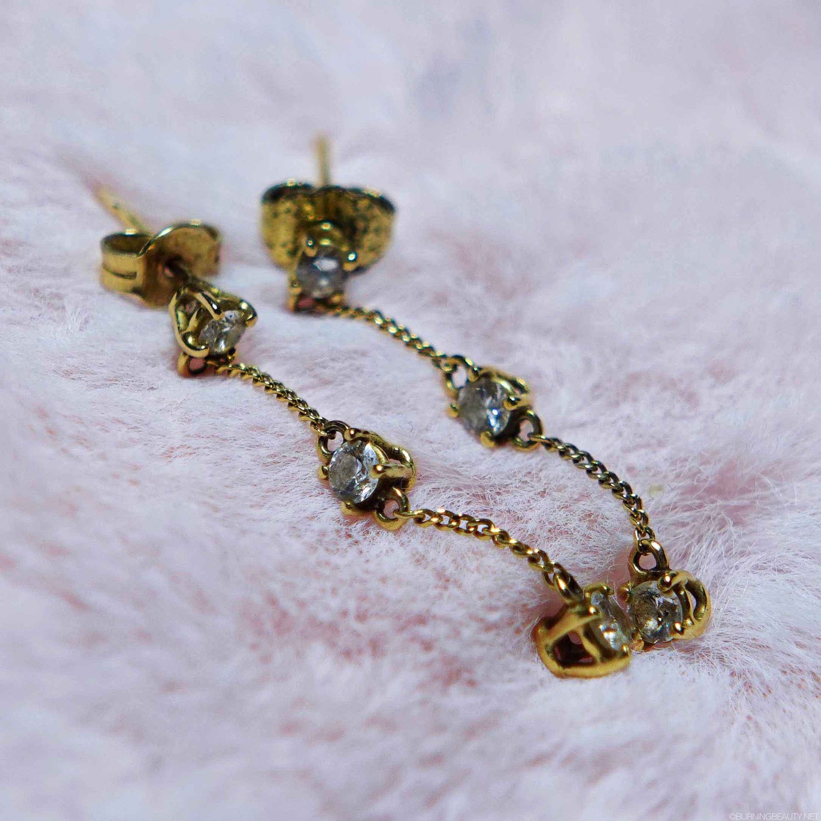 Sono facili da abbinare ad altri gioielli e grazie alla chiusura doppia si può giocare: punto luce un giorno, cascata il giorno dopo. A sorpresa, stanno molto bene anche sugli helix. La farfalla di chiusura, poi, è piccola. Non è la mia preferita (sogno un flat chiuso da una vita), ma ci si accontenta.